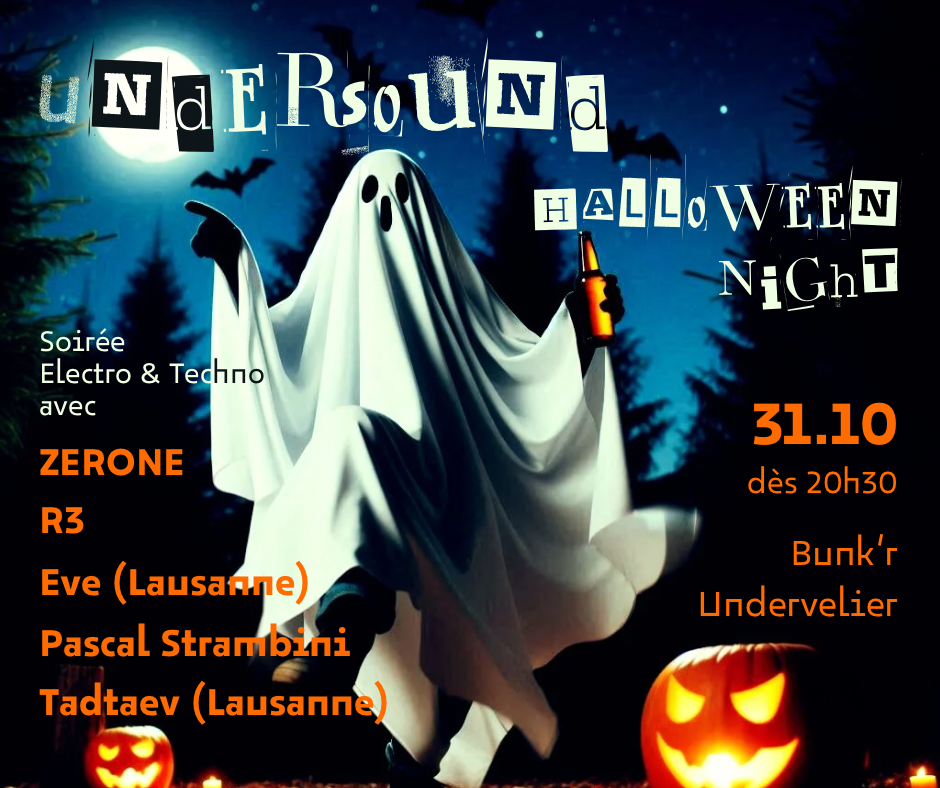 Rendez-vous au Bunk'r (Halle des fêtes, Undervelier) le vendredi 31.10 dès 20h30.